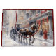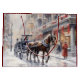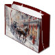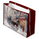 Eine Urlaubsstickettasche mit einer klassischen viktorianischen Urlaubssammlung einer Stadtwelt mit Gebäude in roten Bögen, Urlaubsshoppern und einer gezeichnet Pferdekutsche, die sich durch den schneebedeckten Abend zieht.