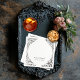 Genießen Sie Ihre gotische Hochzeit mit einem Viktorianisch inspiriert Cocktail aus Hochzeitscocktail, der zeitlos Eleganz und Geheimnis ausstrahlt. Dieses atemberaubende Design, das an eine antike Buchbindung erinnert, besticht durch eine schwarz-weiße Lakefilee, die den Charme vergangener Zeiten widerspiegelt. Lass deine Liebe mit einer so unvergesslichen Tischnummer wie deines Tages. Erstellt von der einfachen Farmhouse Press.