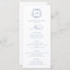 Dieses Viktorianische Barock Floral Wappen Blue Wedding Menu bietet ein zeitloses, Vintages botanisches Monogramm-Wappen, das aus Reben von Blattwerk und Blumenakzenten besteht.