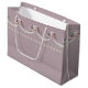 Diese Tasche hat den Viktorianischen Stil und einen strukturierten lila Hintergrund. Auf der Oberseite sind Ribbons mit Highlights der Weihnachtsbänder eingezogen. Perlen ergänzen die Einrichtung. Wenn Ihnen das Vintage Aussehen des vergangenen Jahres gefällt, können Sie dieses Design für die diesjährigen Ferien Liebe.
