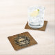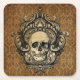 Diese Vintagen Halloween-Untersetzer verfügen über einen verzierten Rahmen mit einem Schädel-Design in der Mitte auf braunem Damast-Hintergrund.