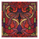 Ein leuchtendes Buntglasmuster im Vintagen Viktorianischen Stil. Die uralte Kunst des Bleiglas und Buntglaskunst wird hier vor einem strukturierten Hintergrund neu erschaffen. Das Licht, das durch eine durchsichtige Glasscheibe strahlt, verleiht dem Ganzen ein Gefühl von Ruhe und Ruhe.