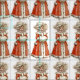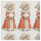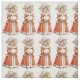 Eine Papierpuppe viktorianisches Mädchen in einem schönen roten Wintermantel gekleidet, Hut und weißer Pelzfellmanschette. Ein charmantes Vintage-Bild.