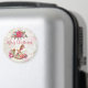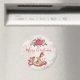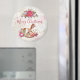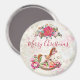Ein festlicher Weihnachtsmagnet. Der Hintergrund ist eine Vintage Collage mit einem verblassten Bild von rosa Rosen, grünen Blätter und französischer Schrift. Obergeschoss befindet sich ein hübscher Poinsettienbouquet und ein viktorianisches Rockpferd, umgeben von hübschen rosafarbenen Pfannkuchen und Posen.
