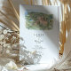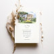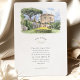 The coordinating back presents a closer garden scene with sculpted hedges, blooming borders, statues, and a grand umbrella pine tree beside the villa façade. A “Finer Details” heading below the painting creates the perfect space for travel information, directions, schedule notes, or your wedding website. All wording is fully customizable, making this suite ideal for Amalfi Coast celebrations, Italian villa weddings, or any European-inspired event that wants to highlight its venue through hand-painted architectural watercolor art.
