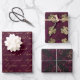 Deep burgundy - weinrot und schimmerndes goldenes Muster, das Papier in drei verschiedenen Weinrichtungen umhüllt, darunter bedrückter Grunge Damask, Weinrebe und altmodische französische Handschrift.
