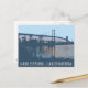 Postkarte mit der Brücke, die San Pedro mit Long Beach verbindet, das Vincent Thomas Bridge Grafik-Kunstwerk aus San Pedros Sicht. Diese farbenfrohe Grafik dieser berühmten Brücke ist ein originelles Objekt, das Sie sonst nirgendwo finden werden.