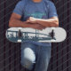 Skateboard mit der Brücke, die San Pedro mit Long Beach verbindet, das Vincent Thomas Bridge Grafik-Kunstwerk aus San Pedros Blick. Diese farbenfrohe Grafik dieser berühmten Brücke ist ein originelles Objekt, das Sie sonst nirgendwo finden werden.