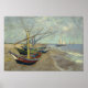 Fischerboote am Strand von Les Saintes-Maries-de-la-Mer von Vincent van Gogh, 1888. Vincent van Gogh war ein niederländischer postimpressionistischer Maler, der zu den bekanntesten und einflussreichsten Persönlichkeiten in der Geschichte der Western-Kunst gehört. In etwas mehr als einem Jahrzehnt hat er ungefähr 2100 Kunstwerke erschaffen, darunter etwa 860 Ölgemälde, die meisten davon in den letzten zwei Jahren seines Lebens. Sie umfassen Landschaften, Stillleben, Portraits und Selbstporträts und sind durch kühne, symbolische Farben und dramatische, impulsive und ausdrucksstarke Pinsel charakterisiert, die zu den Fundamenten der modernen Kunst beitrugen. Er verkaufte nur ein Gemälde während seines Lebens und wurde nach seinem Selbstmord, dem Alter von 37 Jahren nach Jahren der Armut und psychischen Erkrankungen berühmt.