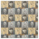 Vincent van Gogh Gewebe, Remake mit vier berühmtes Selbstporträtzeichnungen in der warmen einfarbigen Palette und stilvoller Schriftarttext mit berühmten "Starry Nacht-" und "Sonnenblume" Malereien in den blauen gelben Hintergrundfarben