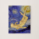 Vincent Van Gogh Starry Night Der blaue Nachthimmel ist voll von wirbelnden Wolken, Sternen und einem hellen Halbmond. Starry Night with Bright Moon, The Night Traveller Matisse inspirierte goldene Silhouette in einer traumhaften nächtlichen Landschaft.