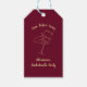 Vino Before Vows Bachelorette Gift Tags. Design features a chic wine glass against a rich burgundy red background, perfect for a wine-themed bachelorette party. The golden script font adds a touch of elegance and sophistication to the design. Whether you're planning a wine tasting adventure or a cozy night in with the girls, our Vino Before Vows collection has everything you need. From invitations to tote bags, napkins to cute party favors, our collection will make the perfect addition to your bachelorette party. So, grab your girls, pour yourselves a glass of wine, and let's celebrate the bride-to-be in style!