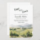 Vino before Wine Wine Bridal Duwer Einladung verfügt über eine Aquarellweinerei und Gebirgsdesign. Auf der Rückseite ist Platz für die Initialen von Braut und Bräutigam auf einem Weineimer.
