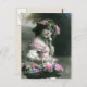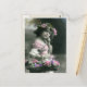 Schönes junges Mädchen mit handfarbenen/getönten Blume auf dieser Vintagen Postkarte