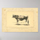 Vintager Druck von James Blyths Jersey Cow "Longueville Belle" aus dem Jahr 1888. Der Kunstdruck hat die verblasste antike Patina, die man auf einer über 125 Jahre alten Illustration erwarten würde.