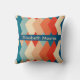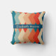 Das Design zeigt ein geometrisch inspiriert Muster, das an die 60er Jahre erinnert und eine fette Auswahl an länglichen Rautenformen in einer Palette von Marineblau, Korallenrot, aquamarin, Beige und Creme aufweist. Diese Diamanten sind symmetrisch angeordnet, ineinander greifend, wodurch sich durch Form und Farbkontrast ein visueller Effekt ergibt. Jede Rautenform ist solide mit einer dieser Farben gefüllt und schafft einen kühnen und lebendigen Kontrast, der sowohl auffällig als auch elegant ist. Die repetitive und eckige Natur des Musters verleiht ein Gefühl von Rhythmus und Bewegung, während die Farben ausgewählt werden, um Wärme und Tiefe zu wecken. Dieses Design würde jedem Interieur eine stilvolle und moderne Touch verleihen, was es zu einer hervorragenden Wahl für ein dekoratives Kissen für Ihre Zuhause machen würde.