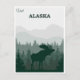 Jeder würde Liebe haben, dieses Vintage-Reiseplakat mit einer Retro-Abbildung eines Elchs in der Natur von Alaska zu erhalten!