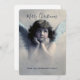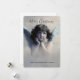 Frohe Weihnachts-Flachkarte mit einem Vintagen Retro-Engel. Wunderschönes viktorianisches Design eines Weihnachtsengels mit weichen weißen Flügeln und rosigen Wangen. Sie hielt ihr Gesicht in den Händen. Friedlich und freundlich aussehen. Der Hintergrund ist mit weichen ätherischen Wolken gefüllt. Nachricht auf der Rückseite, die Sie personalisieren können.