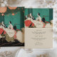 Mit dieser Vintagen Art-Déco-inspirierten Speisekarte können Sie ein kulinarisches Set für Ihr Hochzeitsessen genießen. Die Rezeption präsentiert eine stilvolle Abendsszene aus den 20er Jahren, die elegant gekleidete Gäste an einem formellen Tisch mit gedämpfter Beleuchtung und einer reichen, moodisch anmutenden Farbpalette aus aquamarinen, korallenfarbenen und cremefarbenen Elementen gerahmt. Dieses Design vereint den Charme und den Glamour vergangener Zeiten, perfekt für eine Vintage oder von Gatsby inspiriert Hochzeit. Auf der Rückseite finden Sie köstliche Gerichte mit raffinierter Typografie, die einen klassischen und unvergesslichen Look vervollständigen. Ideal für Paare, die eine Touch von Nostalgie und Eleganz in ihrer Hochzeitsdekoration hinzufügen möchten.