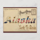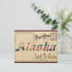 Diese Postkarte hat ein Vintag altes Aussehen und hat den Staat von Alaska mit einer Fahne in den Buchstaben. Schön, an jeden zu schicken!