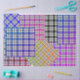 Farbiges kariertes Gewebepapier mit blauem, rosa, lila, grünem Schwarz-Weiß-kariert. Für Geschenkverpackung, Entkopplung oder Verkleidung. Miami Effect wurde auf das Papierdesign angewendet.