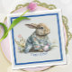 Entfernen oder ersetzen Sie den Text auf diesen Vintagen Aquarelltafeln im Ostermotiv. Entworfen mit einem Baby-Hasen mit einem sehr detaillierten Blumenmantel mit zwei Ostereiern und Frühjahrspalast-Blume-Akzenten auf hellgrau und blau. Suchen Sie nach passenden Bechern, Servietten und anderen Gegenständen in derselben Designkollektion.