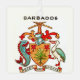 Große Vintage handgezeichnet farbenfrohe Barbados Postkarte mit dem Wappen und einer Landkarte der Insel.
