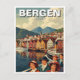 Vintag Bergen Norwegen Travel Postkarte