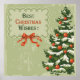 Wünschen Sie Ihren Lieben mit diesem Vintagen, schönen roten, grünen und weißen Poster beste Weihnachtswünsche. Es enthält Weihnachtsbaum, Kugeln und Schnee.
