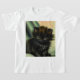 T - Shirt mit einem lieblichen schwarzen Kätzchen! Das grüne mit Augen Kätzchen sitzt auf einer Decke mit rosa Blume. Ein wunderschönes Geschenk für Katzenliebhaber und Viktorianische Kunstliebhaber!