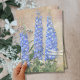 Vintage gemischte Medienkunst, die von Audrey Jeanne Roberts, einem international anerkannten Künstler und Designer, in Aquarell und Ölpastells gemalt wurde. Drei elegante Spuren des blauen Delphinium und ein weißer Mohn in einem Landgarten. Ein Paar Libellen sind Set über Vintages Drehbuch Handschrift ephemera texturalen Hintergrund. Copyright, alle Rechte vorbehalten.