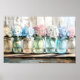 Vintage, pastellfarbene Glaskeramikgläser, gefüllt mit kräftigen und zarten Hydrangea-Blume.