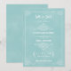 Einfach, elegant Save the Date mit dünnen, extravaganten Wirbel, die an Vintage Kunst-Deko-Design erinnern, vor einem weichen strukturierten, robinblauen Hintergrund.