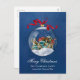 Feiern Sie die Saison mit dieser minimalistisch blauen Vintagen Bauble Weihnachtskarte. Mit einem zarten Bauble, das ein altes Auto umgibt, und festlichen Elementen aus Heiligen, Bändern und Kränzen verbindet dieses Design Nostalgie mit moderner Einfachheit. Set vor einem traumhaft blauen Hintergrund, die elegante Komposition ermöglicht die aufwändigen Details des Kunstwerks zu glänzen und gleichzeitig ein sauberes, raffiniertes Aussehen zu bewahren. Diese Karte ist leicht mit Ihrem Familiennamen zu personalisieren und ist ein zeitloser Weg, den Zauber von Weihnachten zu teilen.