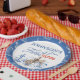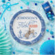 Vintag Blue Cowboy First Rodeo 1. Geburtstag Papieren Boy's blaue und rote erste Rodeo Geburtstagstorte Rundpapier Platte mit einer Wüstenlandschaft, Seilstil und einem Schriftart im Western-Stil in Rot. Diese erste Rodeo-Geburtstagsplatte zeichnet sich durch ein blau-weißes Stiefel und ein langgezogenes Kuhmuster aus.