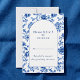 Diese atemberaubende Hochzeitseinladung wird durch die zeitlose Schönheit der Töpferei von Delsoftware inspiriert, die auf einem weichen cremefarbenen Hintergrund mit feinen blauen Blumenmustern besticht. Das klassische Design verbindet Eleganz mit einer Touch Vintagen Charmes und eignet sich somit ideal für Paare, die traditionelle Stile mit einer modernen Drehung Liebe. Der gewölbte Rahmen zeigt anmutig die Details der Hochzeit und schafft so ein künstlerisches und raffiniertes Aussehen. Ideal für feierliche Hochzeiten, Gartenzeremonien oder Veranstaltungen mit einem blauen und weißen Thema, ist diese Einladung sicher, einen bleibenden Eindruck auf Ihre Gäste verlassen.