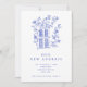 Eine charmante neue Adresse/neue Zuhause-Ankündigung mit einer blauen Linie gezeichnet Abbildung eines Hauses, umgeben von Blume.