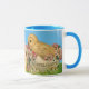 Diese niedliche, blaue Combo-Tasse verziert Ihre Küche mit einer Vintagen Baby-Huhn und Osterei-Tasse. Der Gruß kann mit Ihrem Text personalisiert sein.