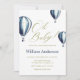 Vintag Blue Hot Air Ballon Babydusche Einladung
