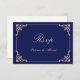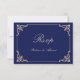 Vintage Nikah Islamische Hochzeit RSVP Card. Eine elegante blaue uAwg-Antwortkarte, die Sie an Ihre Familie und Freunde schicken können, um sie lassen, wann Ihre Nikah-Zeremonie stattfinden wird. Im Eckrahmen ist ein goldenes Scrollblatt-Design. Bearbeiten Sie den Namen, das Datum, den Ort auf der Rückseite der Karte, und Sie können die Namen der Paare auf der Vorderseite der Karte ändern. Sie können diese Karte auch für andere Zeremonien und islamische Anlässe benutzen.
