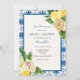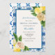 Fun Bridal Dusche Einladung mit einem blauen Mosaikrahmen mit Aquarell und Zitronen. Passen Sie Ihre Informationen an, damit die Braut sein kann. Matching Artikel im Adore Paper Co. Shop auf Zazzle erhältlich.