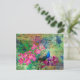 Vintag Blue Peacock Aquamarine Musik Rosa Blume Postkarte