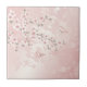 Hübsche rosafarbene Kirschblüten und Schmetterlinge auf einem schimmernden Aprikosenhintergrund. Dusty Farben Blumendesign.