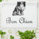 Ideal zum Trocknen eines feuchten Welpen von außen oder zur Ergänzung seiner Bettwäsche. Schöne Schwarz-Weiß-Vintage Hundeillustrierung mit Good Hund-Französisch-Übersetzung—Bon Chien! Ideal, um nasse Pfoten zu putzen, bevor man ins Haus kommt!