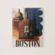 Vintage Illustration USA Reiseplakat aus Boston, Massachusetts mit dem Old Staat House (Vordergrund) und dem New Staat House (Hintergrund), das auf dem Gipfel des Beacon Hill liegt, mit Blick auf Boston Common. Die Alte Nordkirche liegt auf der rechten Seite, von wo aus Paul Reveres berühmte Mitternachtsfahrt begann. Seine "Ein, ob auf dem Land, und zwei, wenn auf dem Seeweg" signalisieren eine Warnung vor der britischen Invasion.