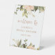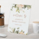 Dieses hübsche Brautparty mit Tischschild und eleganten, pfirsichfarbenen, Vintagen Blume mit viel Grün, grünen Blätter und Ästen. Sie schmücken einen schlichten, weißen Hintergrund mit moderner Schriftzypografie.