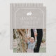 Wünschen liebt ein glückliches Ostern mit dieser festlichen Urlaubskarte. Im Mittelpunkt der Karte steht eine kleine Vintage, sonnige Illustration. Das Design besticht durch elegante und dennoch moderne Typografie, die auf einem texturierten Hintergrund und umgeben von einem zarten weißen Rahmen angeordnet ist. Für ein Foto des Kunden ist ausreichend Platz vorhanden, und die Rückseite der Karte weist ein einfaches Streifenmuster auf einem koordinierenden Hintergrund auf.