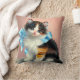 Kissen mit einem niedlichen Kätzchen. Das Kätzchen trägt ein blaues Band, während es hübsch auf einem Tisch sitzt. Ein perfektes Geschenk für Katzenliebhaber und Viktorianische Kunstliebhaber!