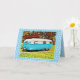Helle und fröhliche Vintage Camper-Trailer-Karte mit lustig hellblauem gemustertem Hintergrund. Inside lautet "Hallo Freund, senden Sie Ihnen Liebe und woll Ihnen zu wissen, ich denke an Sie denken". Diese Karte ist leicht personalisiert.
