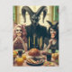 AI generierte Design-Baphomet am Vintagen Ostertisch, wo die beiden Frauen genießen eine Süßigkeiten Abendessen.